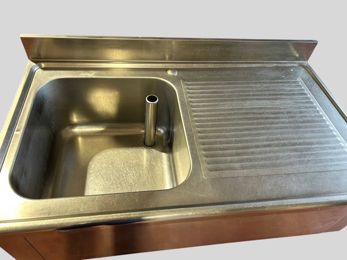 Plonge inox Dimensions : 1200 x 700 x 900 mm Prix : 320 € HT Toutes nos occasions sont garanties 3 mois, pièces et main d'oeuvre uniquements dans le département (56) Toutes nos occasions sont garanties 3 mois pièces hors département (56)